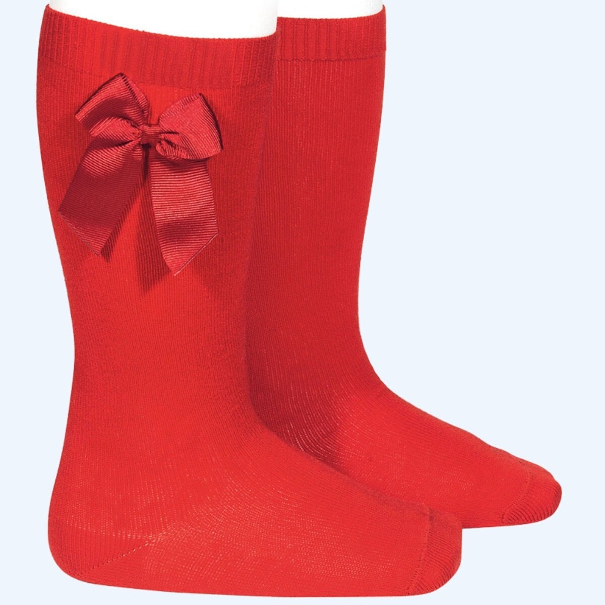 Classic knee high socks with matching colour bow.